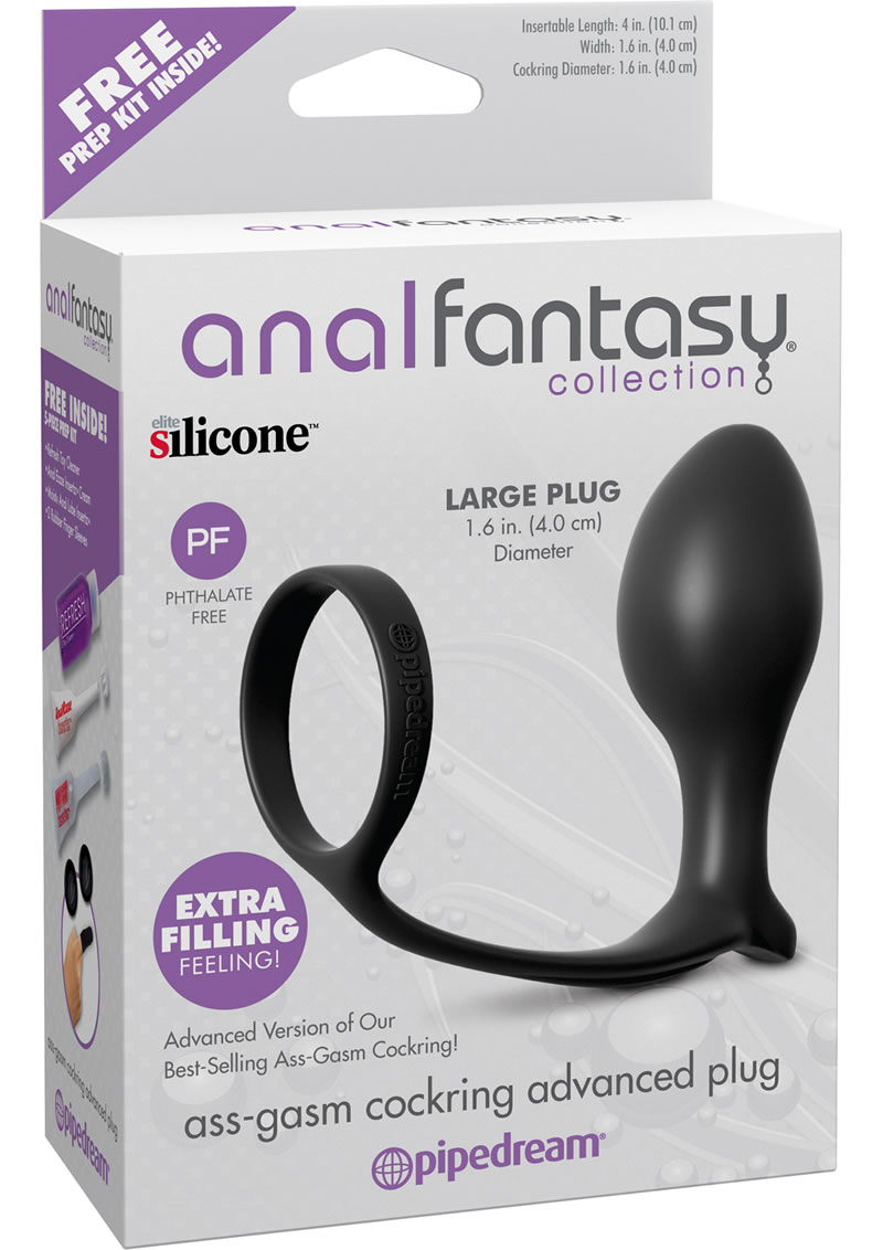 With the Ass-Gasm in your ass and the ring wrapped snug around your cock and balls, youll stay harder and stronger than ever before! The super-stretchy silicone ring puts the squeeze on performance letdowns, maintaining firm erections that last and last! The round, smooth head makes entry and retrieval a snap, while the thin, tapered shaft ensures that the plug will stay in place between your cheeks when the action heats up. Place the ring around the base of your cock and balls, and wear it all day for long-lasting fun and huge, powerful ejaculations!