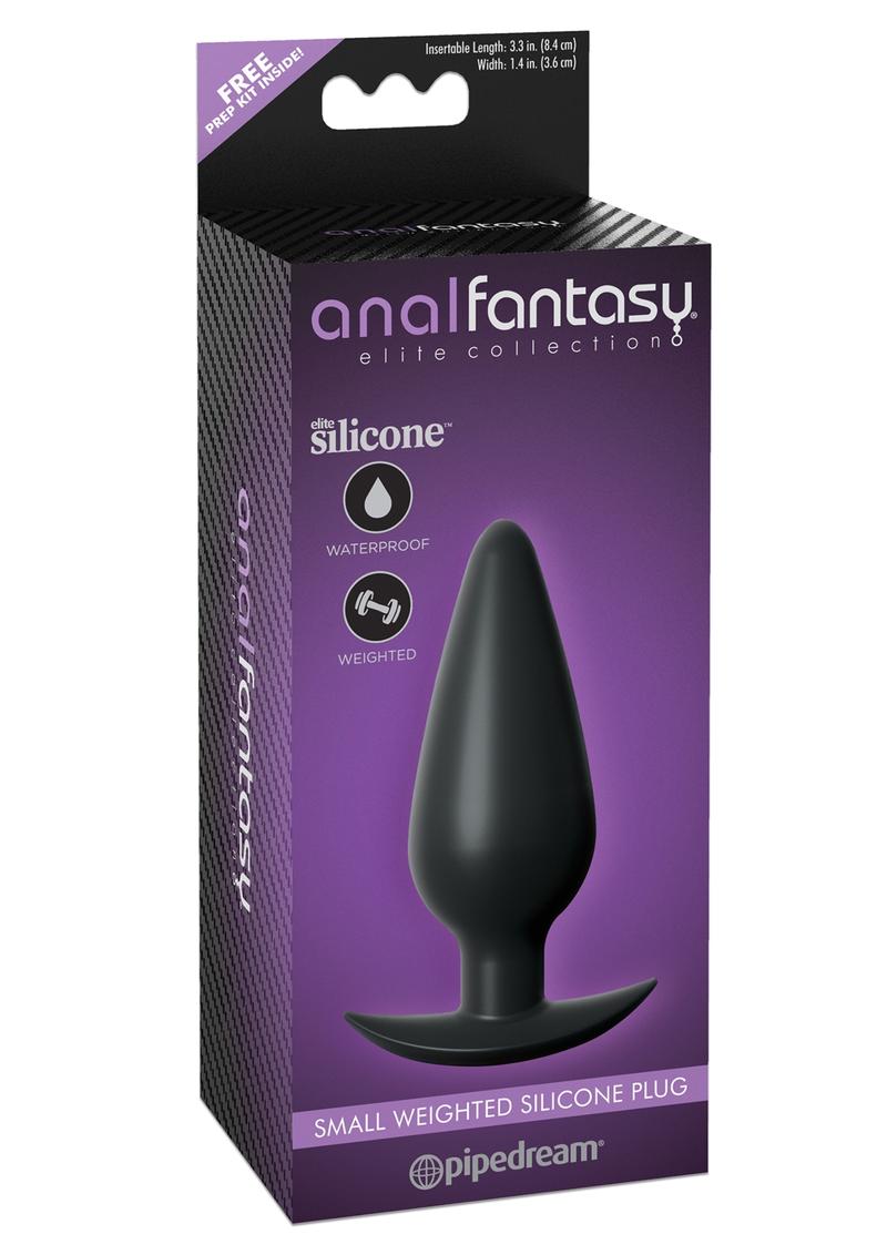Anal Fantasy Elite Collection Small Weighted Silicone Plug Waterproof Black 4.1 Inch 4.4 Ounce