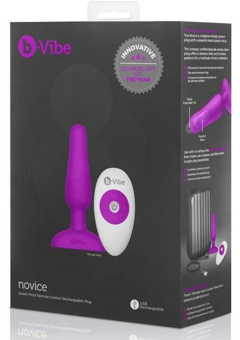 B-Vibe Novice Plug Rechargeable Silicone Anal Plug with Remote Control – Fuchsia