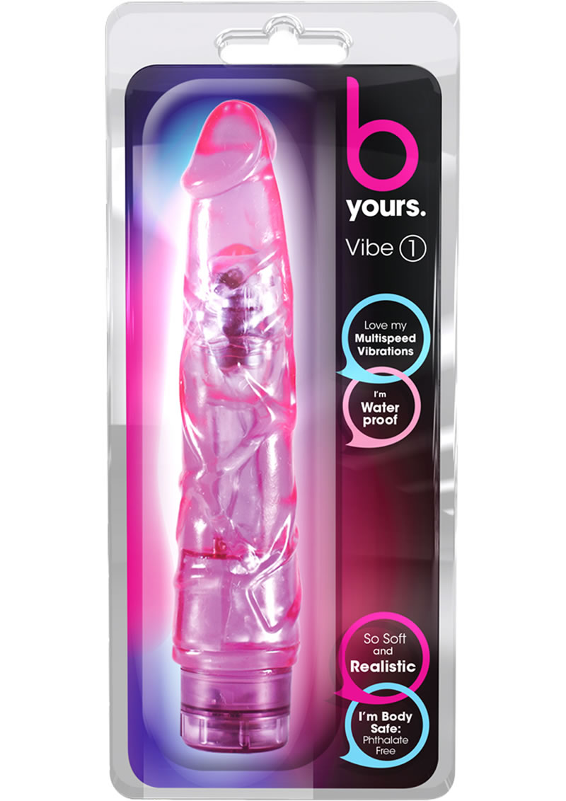 Blush Novelties B Yours Vibe #1 is a 9 inch realistic vibrator with veins and twist dial base for multi-speed vibration. It’s tapered head and thin shaft can be comfortably and easily inserted. Created for the beginner and for the cost conscious, Vibe #1 is made of phthalate free PVC and powered by 2 AA batteries, not included.