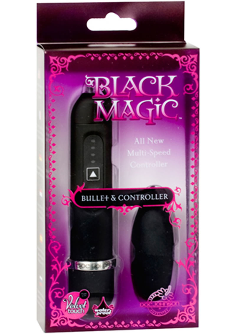Make some magic happen with Doc Johnson’s 2″ Black Magic Bullet. 4-speed action will titillate your nipples, clitoris, or anywhere else you can imagine. Whether used alone or in good company, water based lube is recommended for the best effect. It also features a one-touch multi-speed controller and a luxurious Velvet Touch coating. Waterproof, and made of body-safe, phthalate-free ABS plastic.