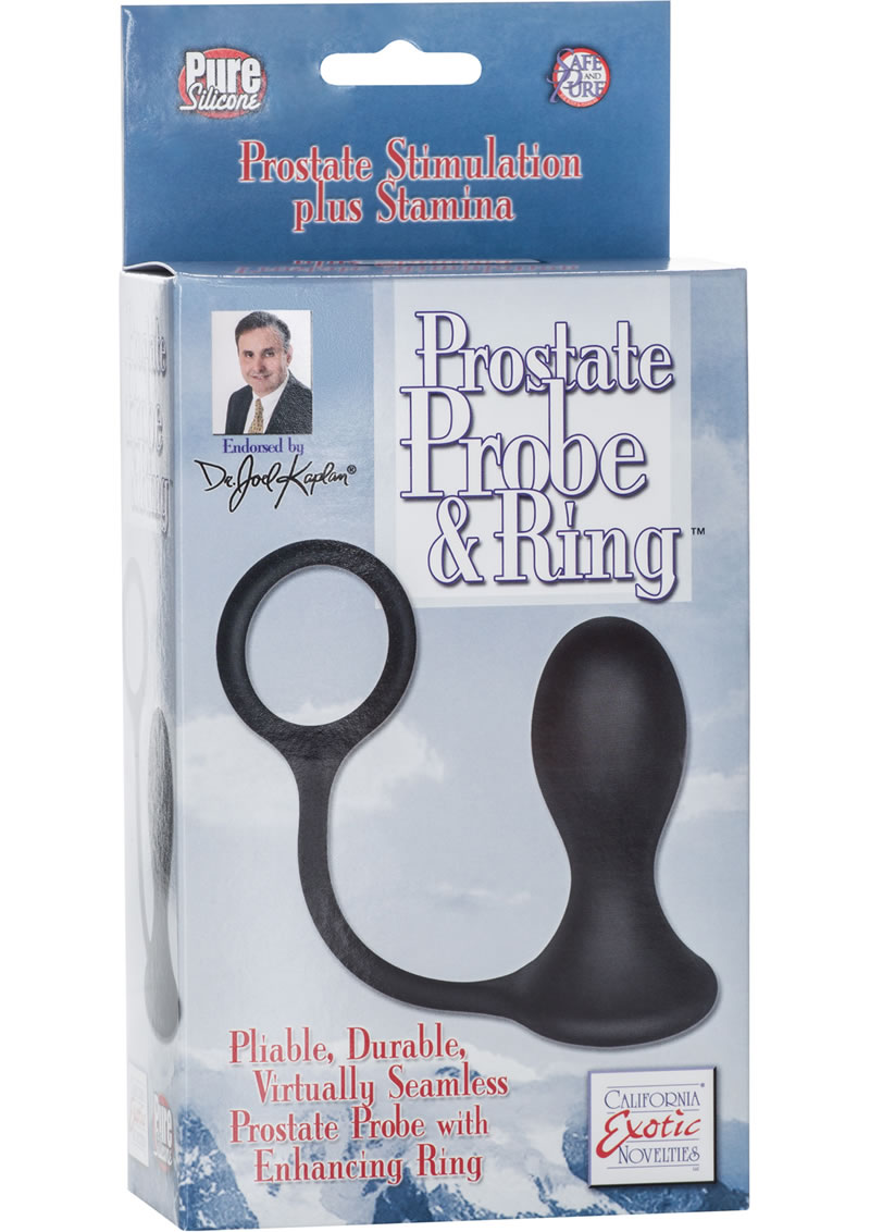 Dr. Kaplan Prostate Silicone Probe With Cockring Black 3.5 Inch