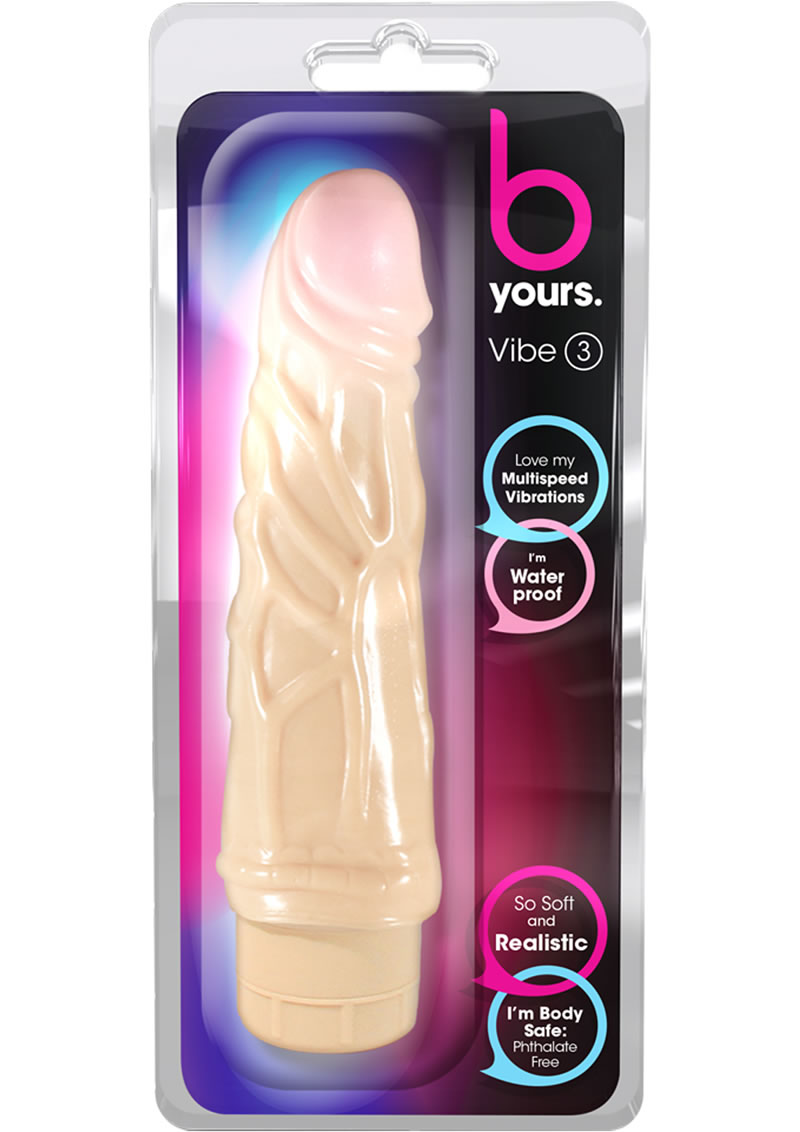 It’s a 7.25 inch realistic vibrator with veins and twist dial based for multi speed vibration. Created for the beginner and for the cost conscious. Vibe # 3 is made of phthalate free PVC and powered by 2 AA batteries, not included.