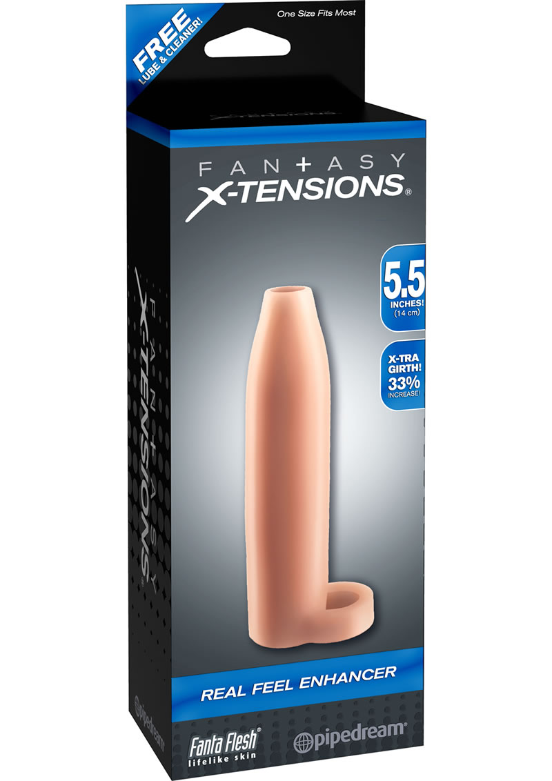 The Real Feel Enhancer is a customizable sleeve that can be easily trimmed at the tip for a perfect fit. The thick enhancer features an open-ended head so you can feel every sensation and still enjoy the natural touch of your lover. It’s super-stretchy to accommodate most sizes, snug enough to help you last longer, and features a ball strap to prolong ejaculation for explosive climaxes. The super-soft Fanta Flesh sleeve makes you 33% thicker, giving you the girth and confidence you need to satisfy your lover.