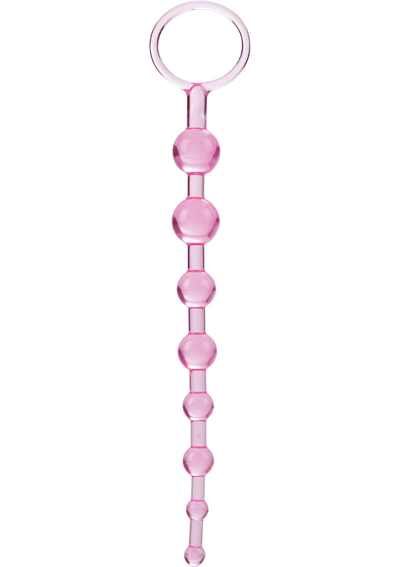 Sized for the beginner. Flexible, slim, graduated pleasure beads with an EZ retrieval ring. Phthalate-free PVC. 8.25″ x .75″/ 21 cm x 2 cm.