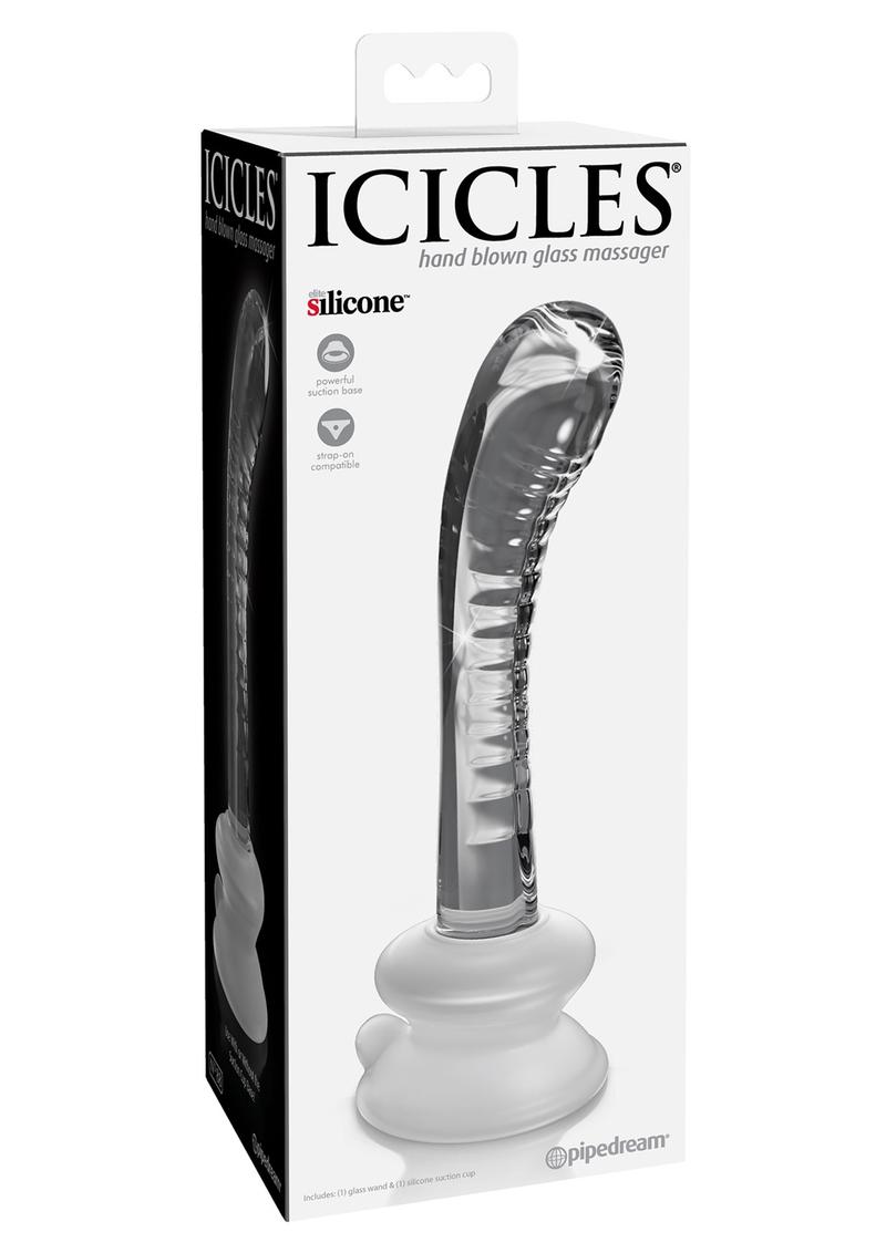 Icicles No 88 Glass G-Spot Wand With Bendable Silicone Suction Cup – Clear