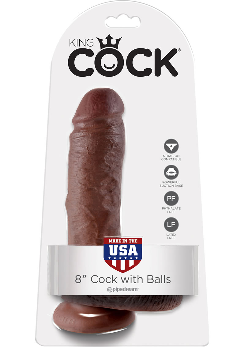 King Cock Realistic Dildo With Balls Brown 8 Inch