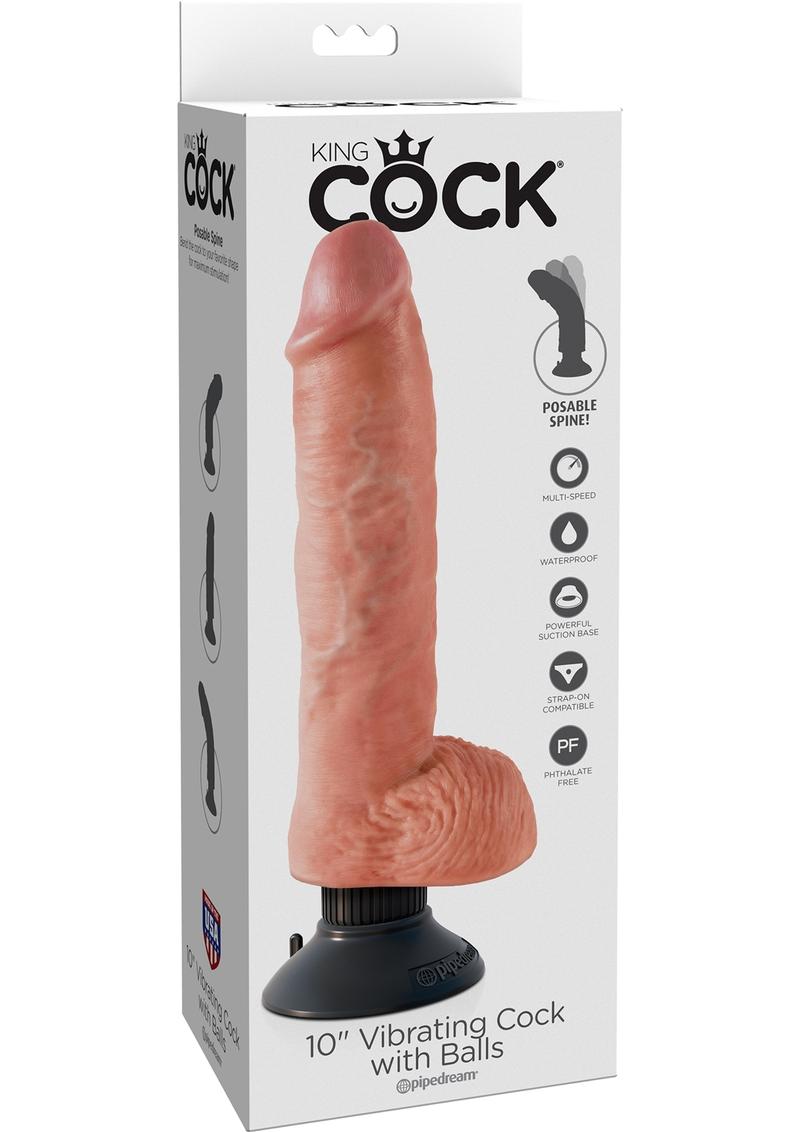 King Cock Vibrating Realistic Dildo Waterproof Flesh 10 Inch