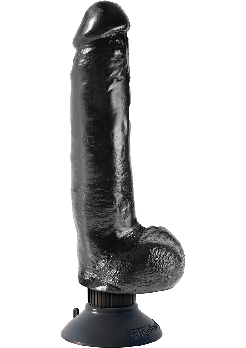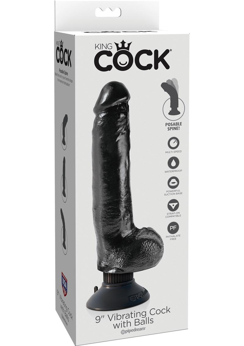 King Cock Vibrating Realistic Dildo With Balls Waterproof Black 9 Inch