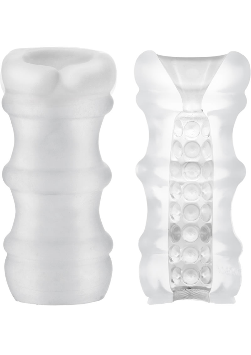 Great for a solo session, or to add something extra to playtime with a partner, the Mood Pleaser masturbators are soft, stretchy strokers with four distinct internal textures. These ultra-unique masturbators from Doc Johnson are must-havesthey perfectly combine modern aesthetics with pleasurable functionality. Finger grips on the side of the sleeve make control easy, even with lube, and while these colorful strokers share the same external shape, the internal textures vary radically. This Mood Pleaser (Massage Beads) is Frost-colored with plush internal massage beads. The Mood Pleaser masturbators are 4.6 inches long, with a good bit of stretch to accommodate yet fit snugly. You wont believe how much the soft internal textures will enhance your playtime.