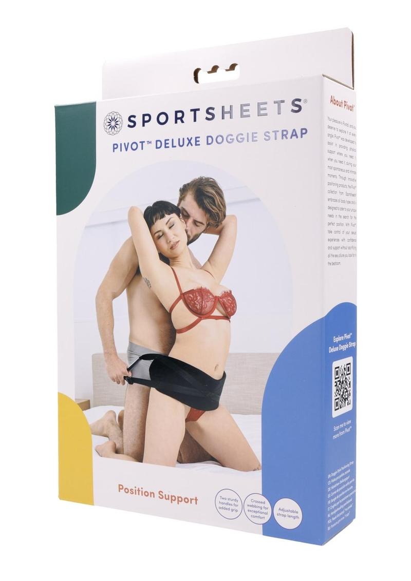 Prioritize your pleasure with the new and improved Pivot™ Deluxe Doggy Strap! Expanding on our signature Doggy Strap design, the Deluxe offers an extended oval padding for additional comfort where you need it most. The adjustable length handles come with a plastic grip for help keeping a comfortable and secure grip at any length. A uniquely crossed, two strap design across the front of the padding helps support the lower abdomen while in use and assists in keeping the strap in place.
